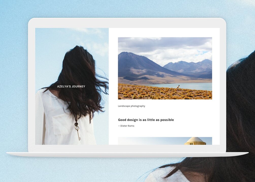 Azelya theme is perfect for telling your story with any type of post in a single column using half of the page as well as big personal or professional branding for the oher half.